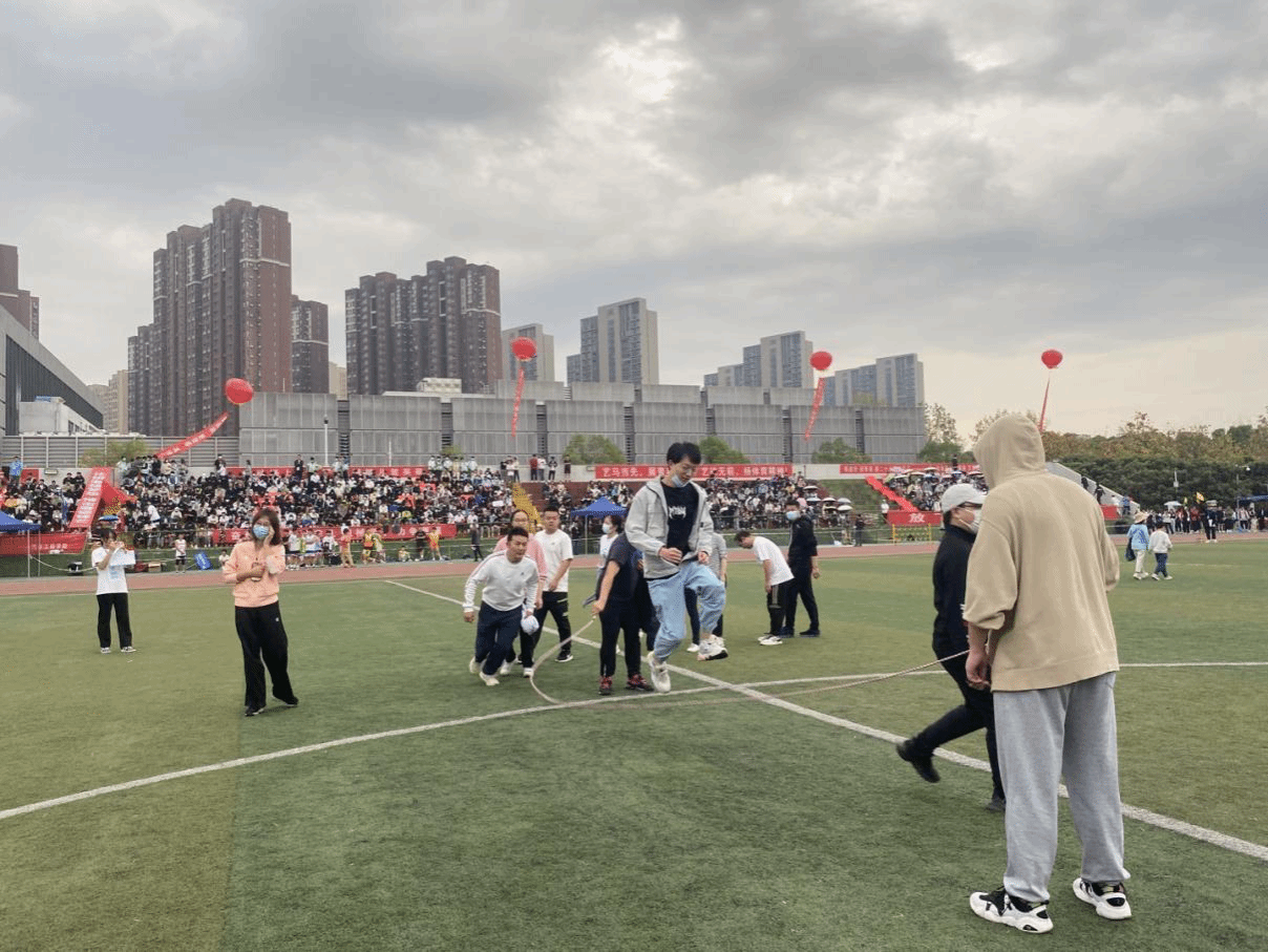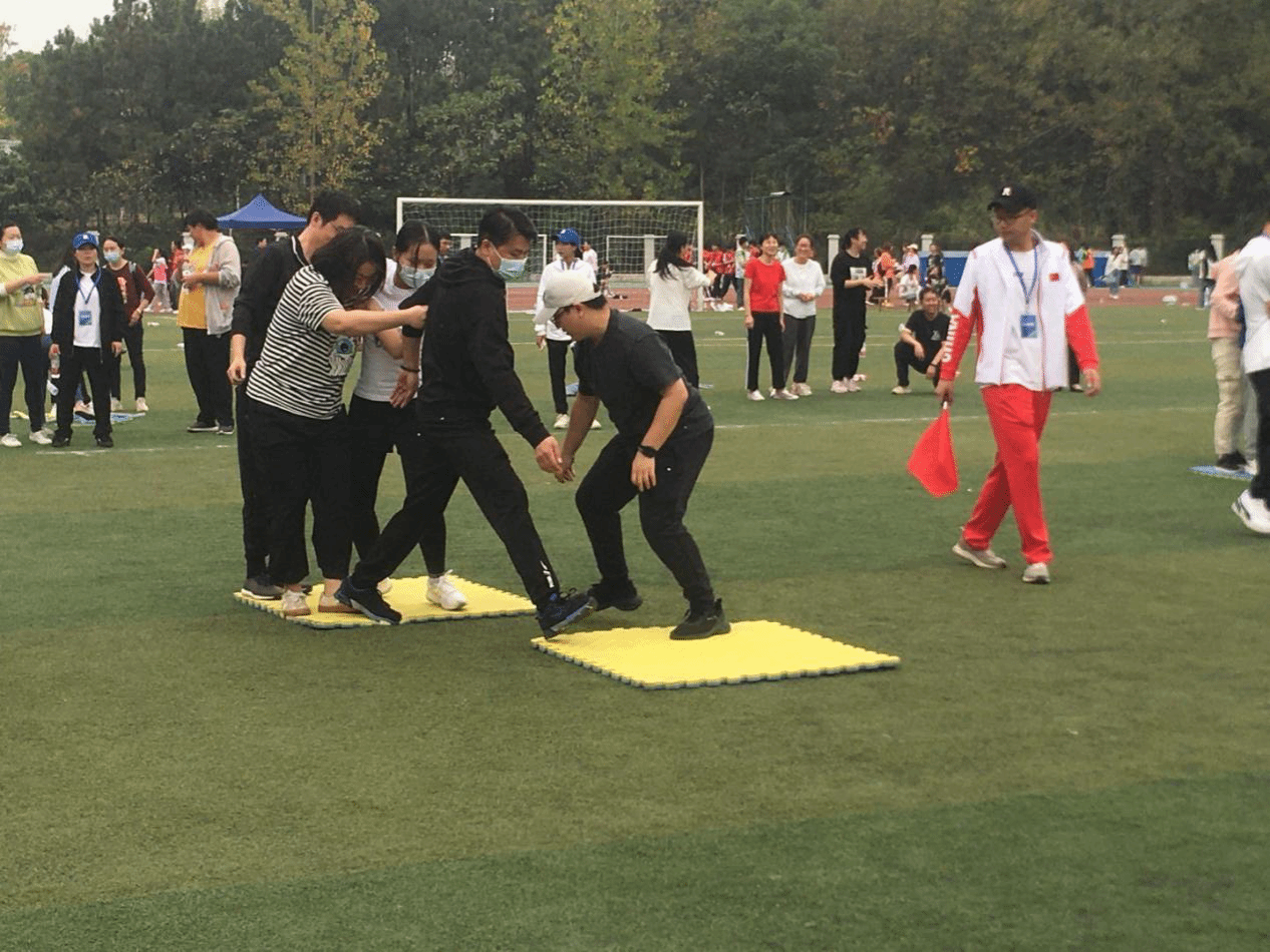 11月10日第十三届学生运动会正如火如荼的进行,校工会为丰富全校教职工文体生活,增强教职工的身心健康,增进各单位教职工沟通与交流,于11月11日组织举办了教职工趣味运动会,运动会共有四项比赛项目:跳长绳、搭桥过河、飞镖、趣味保龄球。