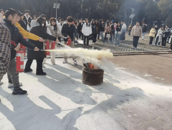 此次演练旨在进一步增强师生员工消防安全意识,掌握突发火情的应急处置能力,有效避免发生实训室消防安全事故。在灭火演练环节,校保卫处老师讲解了灭火器的使用方法及注意事项,并就灭火器的正确使用方法进行了现场演示。在认真听讲及观摩后,现场老师、同学们参与热情高涨,纷纷参与实操演练,按照培训中讲到的灭火步骤和方法,将火势迅速扑灭。