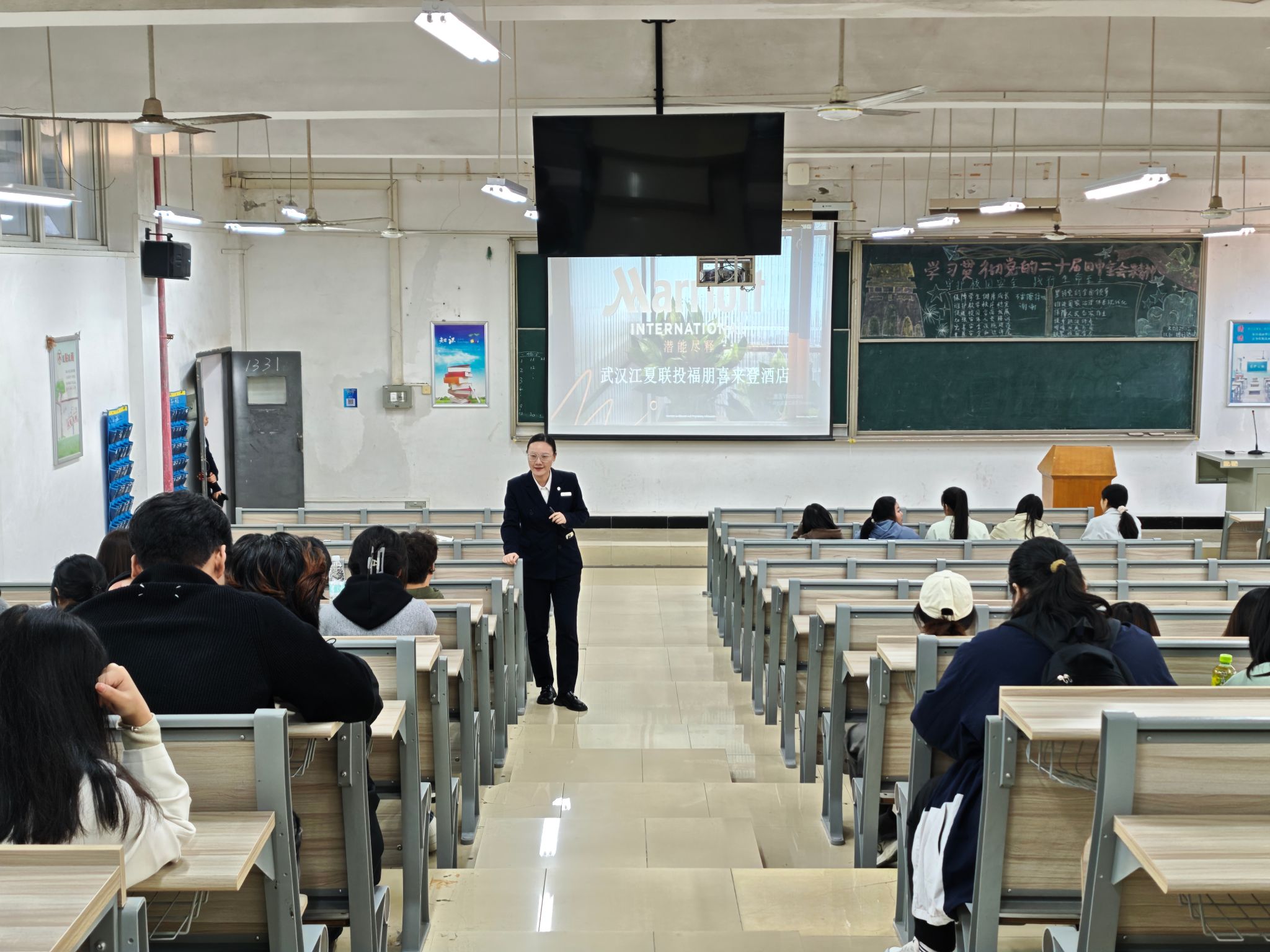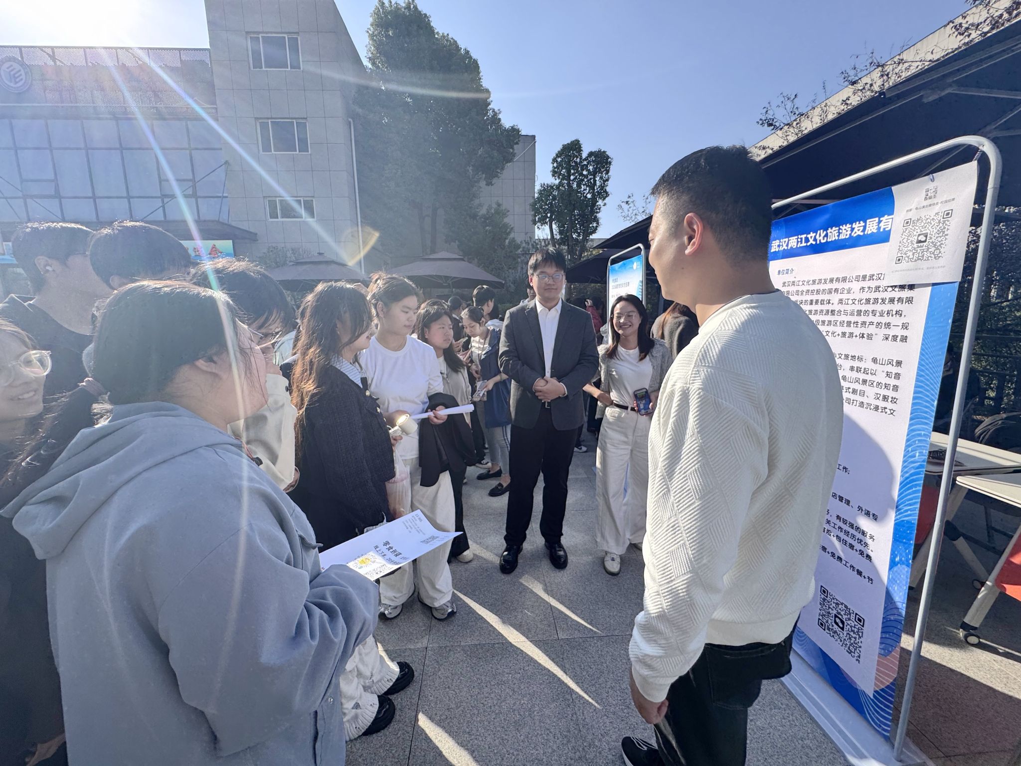 为让学生更全面了解企业情况,武汉大美东湖旅行社有限公司等6家企业当天还举办了企业宣讲会。通过PPT演示、视频播放、现场互动等形式,全方位介绍企业发展历程、核心业务、人才培养体系及招聘岗位详情,为学生与企业搭建了更深入的沟通桥梁,助力学生精准定位职业方向。