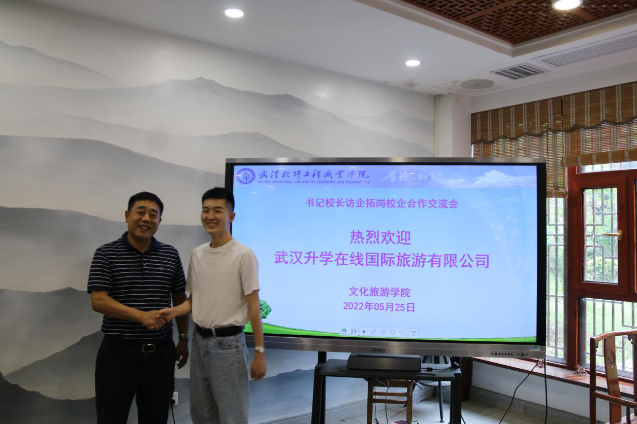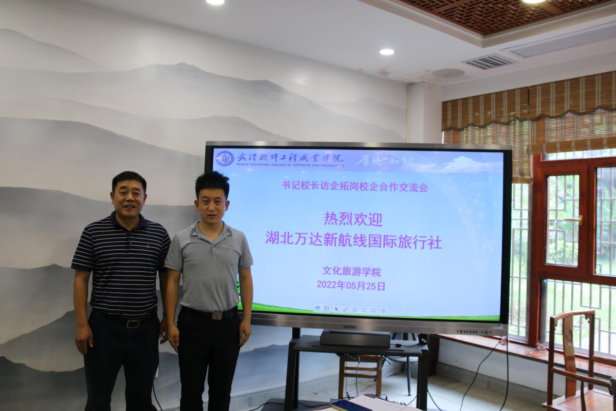 (通讯员 丁黎明)为落实一线工作法,助力我校毕业生顺利就业、尽早就业,2022年5月25日下午,校党委书记马蜂、文旅学院院长罗银舫等一行,在2235茶艺室分别与受邀的湖北万达新航线国际旅行社有限责任公司飞虎导游工作室负责人杨飞虎和武汉升学在线国际旅游有限公司副总经理王晨阳热烈交流,开展武汉软件工程职业学院“访企拓岗”专项活动。