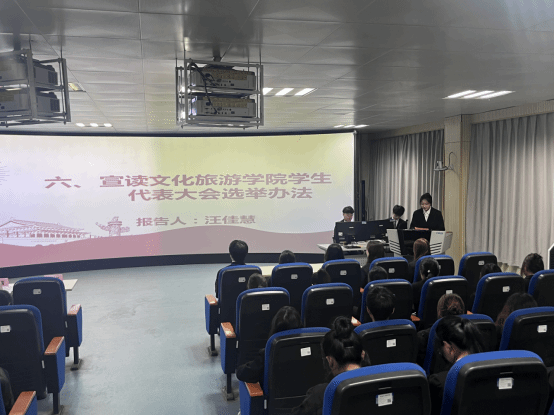 奋进新征程,青春正当时。在全面贯彻党的二十大精神开局之年,在认真贯彻团十九大精神之际,文化旅游学院第二次学生代表大会于2023年10月10日在2233教室隆重举行。文化旅游学院党总支副书记赵珊、团总支书记胡倩以及学院共59名学生代表参加本次会议,本次会议由学院团总支宣传部部长许晨阳主持。