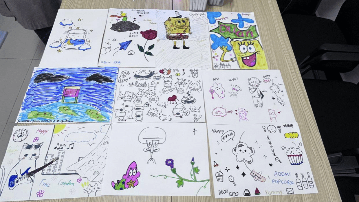 在我手绘我心——情绪涂鸦环节中,倾听着轻音乐,同学们手握彩笔,用画笔记录下当下的所思所想。涂鸦结束后,程欢老师邀请同学们,依次分享了自己绘画的作品及作品中表达的心情、思想。同学们热情互动,分享了日常生活中自己的情绪解压方式和对未来自己的美好祝愿,缓解了压力,体验了助人自助之乐。