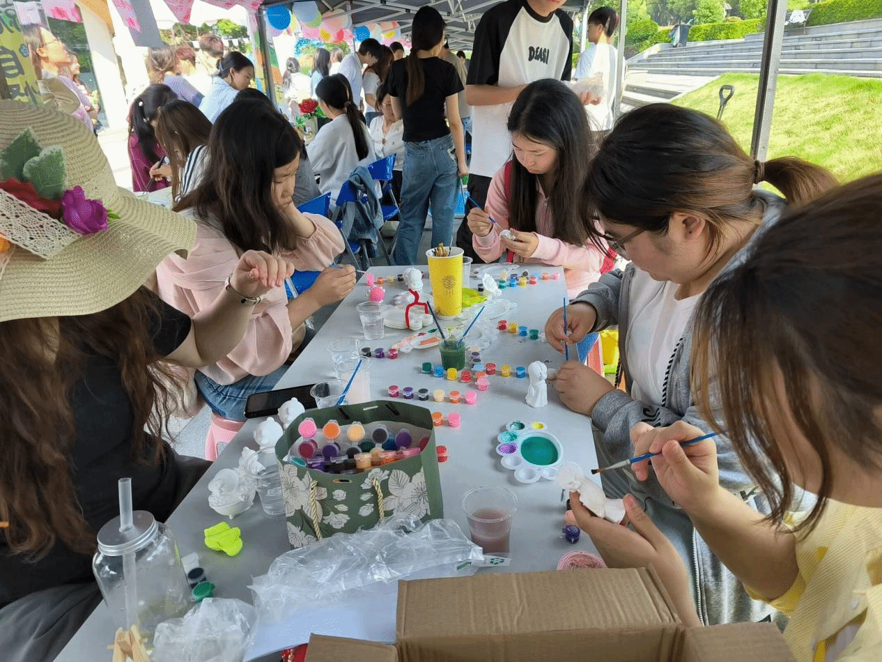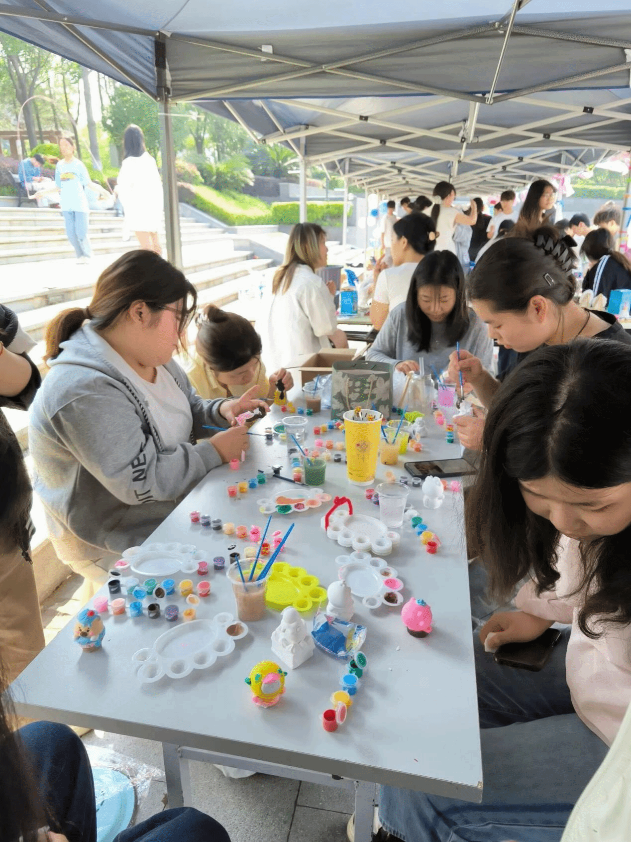 活动还特别设置了“心海扬帆,‘绘’聚青——石膏娃娃、非遗螺钿 DIY”惊喜环节。通过随机抽取幸运学生的方式,向获奖者赠送石膏娃娃白胚或非遗螺钿 DIY 材料包,参与者可选择现场创作或带回完成。当传统非遗工艺与现代手工艺术碰撞,同学们在体验螺钿镶嵌等传统技艺魅力的同时,更感受到了学院对同学们心理健康的多元关怀。