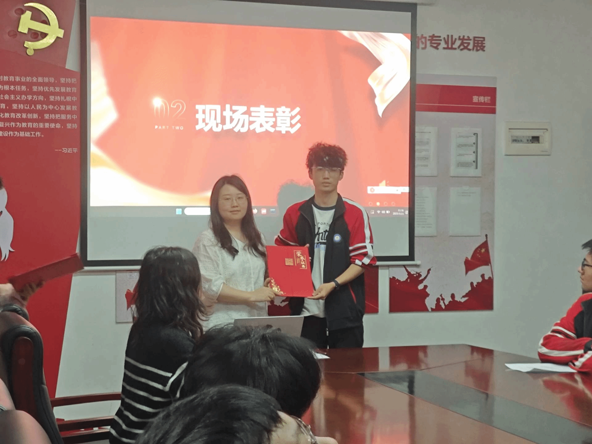 学院党总支副书记赵珊为刘源杰同学颁发国家奖学金证书。赵珊副书记对刘源杰同学取得的优异成绩给予了高度赞誉,并语重心长地勉励全体学生以刘源杰为榜样,树立远大理想,将个人目标与时代需求紧密结合。“青春因奋斗而精彩,人生因拼搏而闪耀。”赵书记强调,希望同学们珍惜在校的宝贵时光,把握每一次成长机会,不断提升自身综合素质,在追求卓越的道路上勇毅前行,在奋斗中实现人生价值。